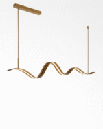 La suspension CUILINE se distingue par ses lignes ondulées élégantes et son fini cuivre raffiné. Véritable œuvre lumineuse, elle joue avec les formes et la lumière pour créer une ambiance chaleureuse et sophistiquée. Son éclairage LED intégré diffuse une lumière douce et homogène, parfaite au-dessus d’une table à manger, d’un îlot de cuisine ou dans un espace de vie moderne. CUILINE marie design sculptural et fonctionnalité pour donner du caractère à votre intérieur.
