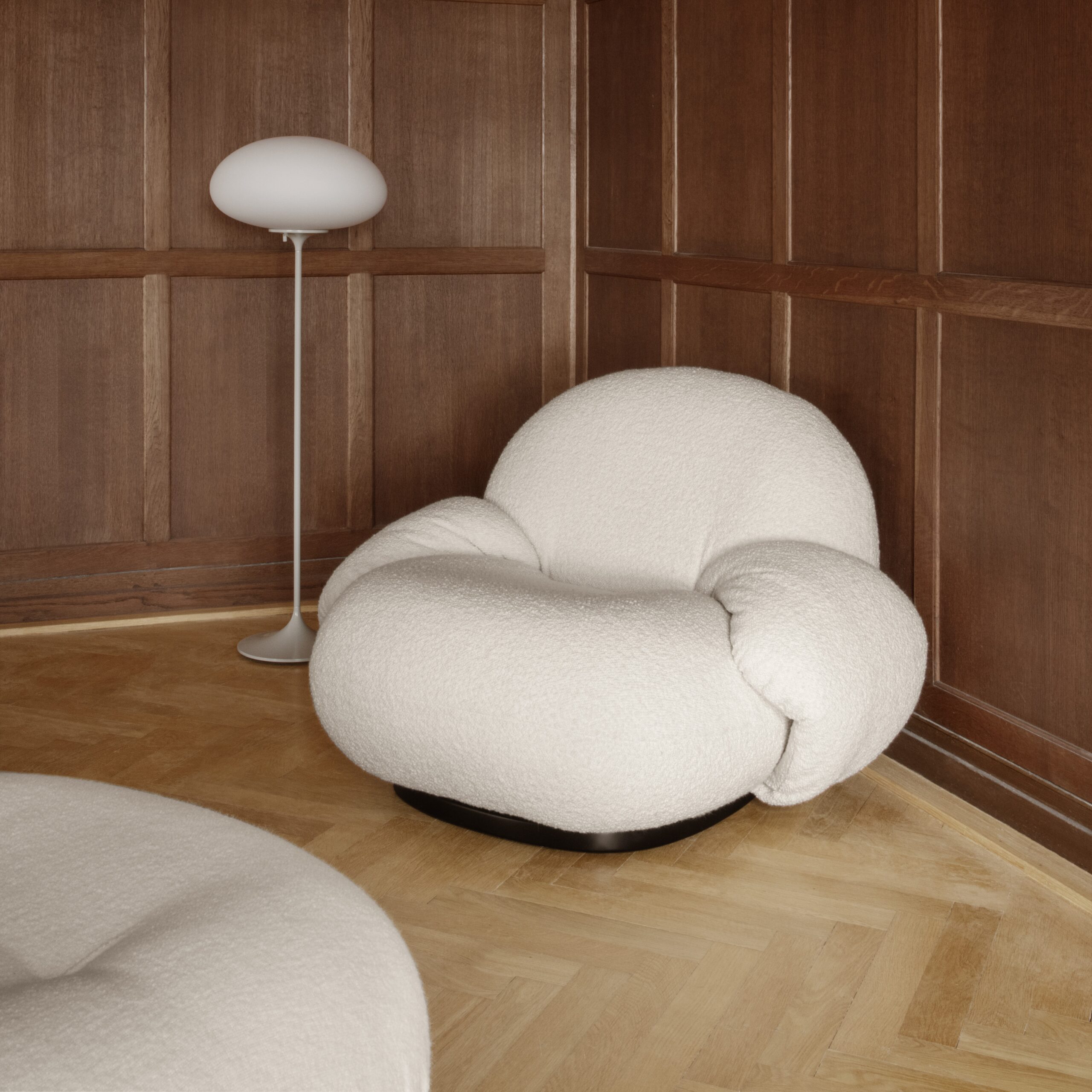 Fauteuil design au rembourrage généreux et aux lignes arrondies, offrant un confort maximal et un style moderne.