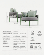 Structure : Métal peint vert, résistant aux intempéries