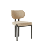 Son piètement métallique noir contraste élégamment avec le revêtement clair, créant une silhouette chic et équilibrée. Que ce soit autour d’une table à manger ou dans un bureau, elle s’intègre aisément dans un intérieur moderne, minimaliste ou même industriel.