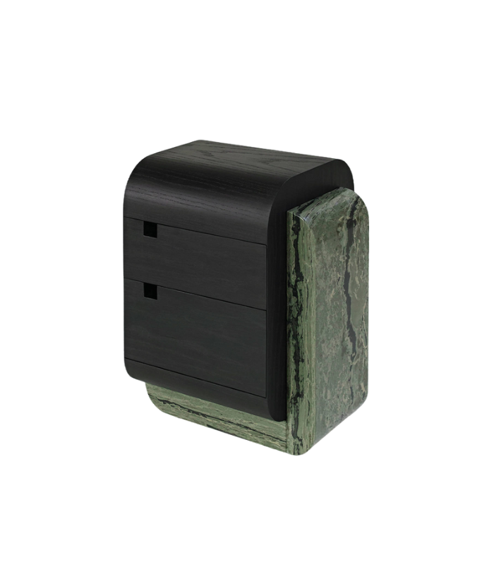 La table de nuit ZENSTONEallie subtilement l’élégance naturelle du marbre vert à la chaleur d’un bois foncé aux courbes douces. Son design asymétrique se distingue par un piètement et un côté en marbre massif qui apportent caractère et raffinement. Les deux tiroirs à découpe géométrique offrent un rangement discret et pratique, parfait pour une chambre à l’esthétique moderne et sophistiquée. Zenstone est un choix audacieux pour ceux qui recherchent un meuble à la fois sculptural et fonctionnel.
